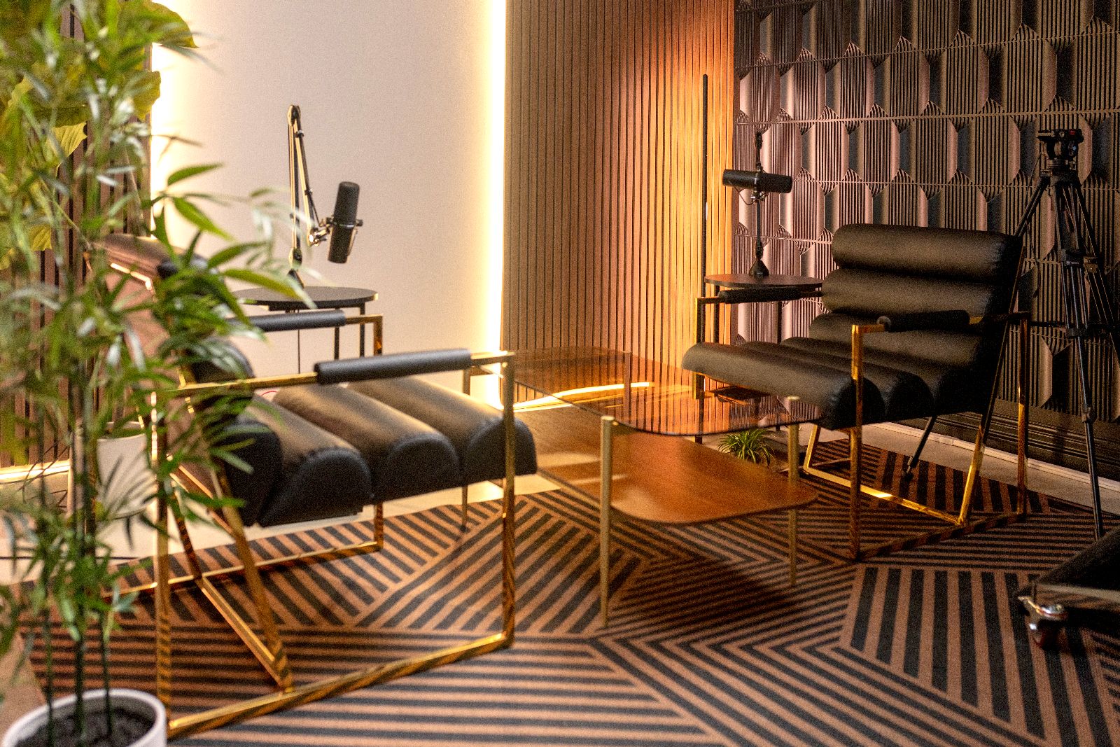 - High-end cameras, studio lights, premium audio